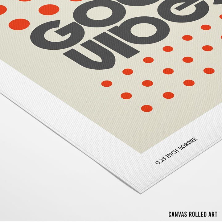 Make a cheerful statement with Good Vibes, a bold graphic wall art print that radiates optimism. Featuring vibrant red dots and chunky retro-inspired typography, this print blends mid-century modern charm with clean, minimalist energy. It’s an easy way to energize your walls—whether in a home office, creative nook, or entryway.