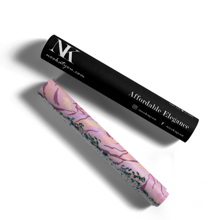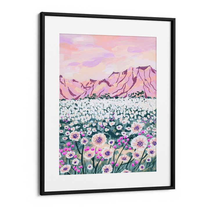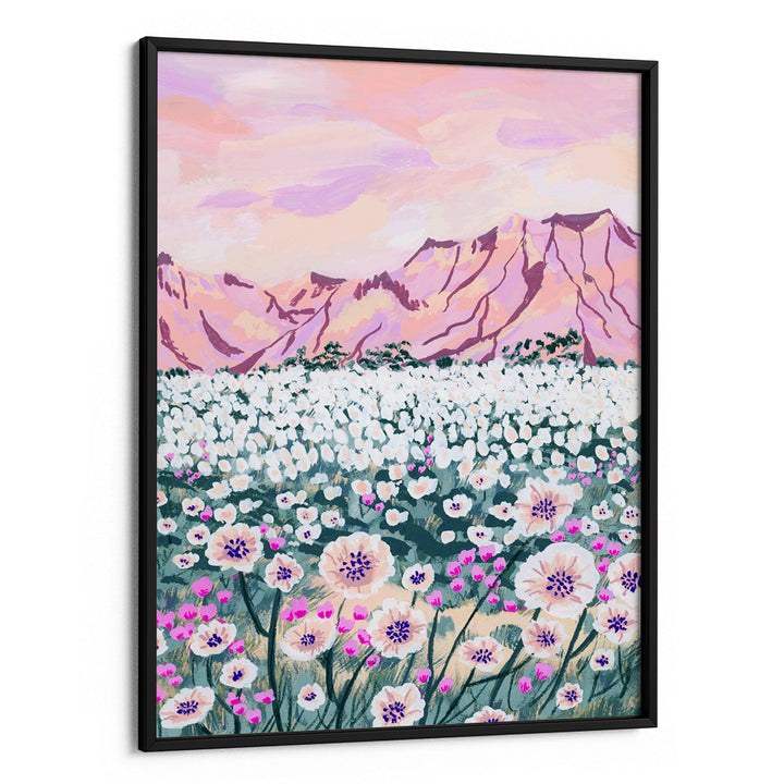 Step into calm with Pink Desert, a breathtaking landscape art print that captures the harmony of nature and light. With lavender-hued mountains rising behind a field of white and pink blossoms, this artwork evokes tranquility, wanderlust, and the quiet magic of desert spring mornings. Perfect for those who love pastel tones and nature-inspired décor, this piece brings warmth and serenity to your living space.