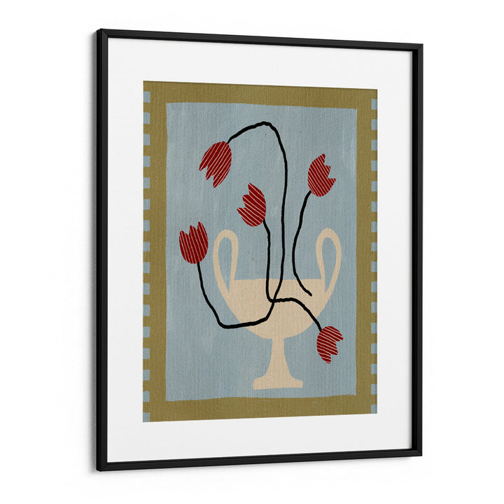 canvas paintings, whimsical floral art, botanical canvas print, retro art poster, boho wall decor, modern folk style, red flower wall art, eclectic vase painting, abstract botanical artwork