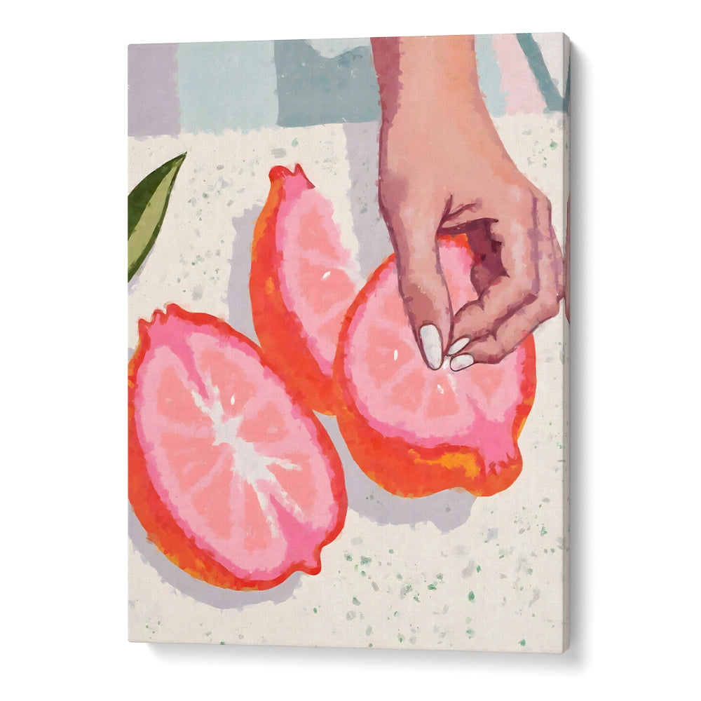 Botanical wall art, citrus wall art, modern botanical print, kitchen wall art, pink fruit artwork, organic home decor, contemporary canvas art, warm tone wall art, minimalist botanical decor