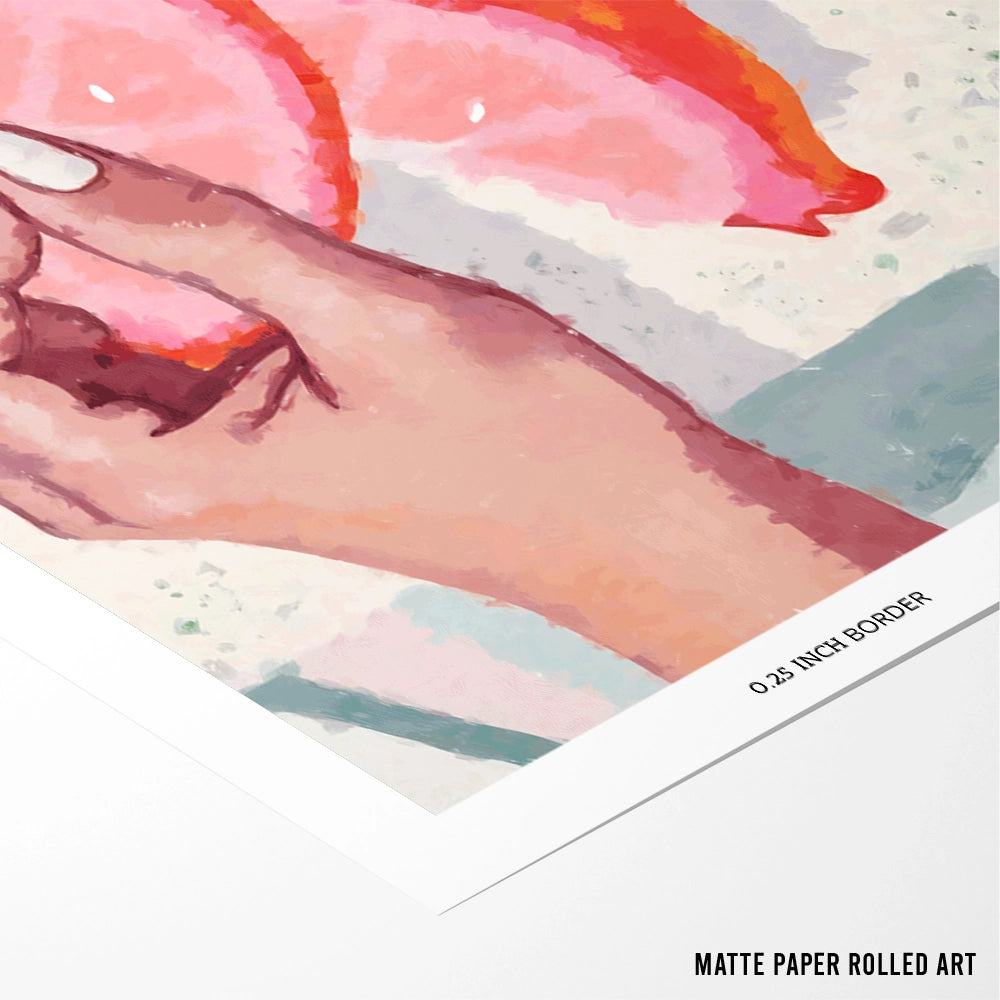 Fresh, expressive, and beautifully organic, An Offering captures a quiet moment of interaction between nature and form. This refined Botanical wall art piece features hand-painted citrus slices in warm pink and coral tones, paired with soft natural textures and a subtle human touch. The composition feels modern yet timeless—perfect for curated interiors that celebrate colour, simplicity, and thoughtful design.