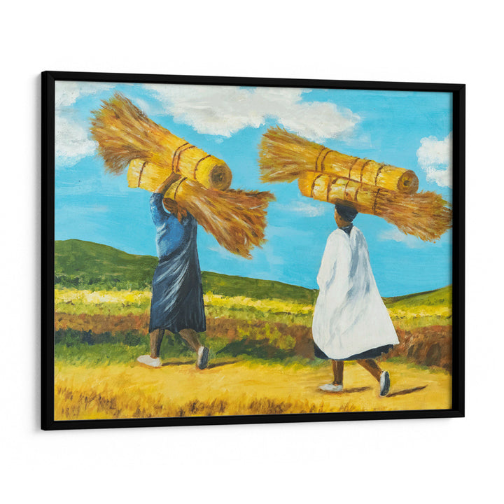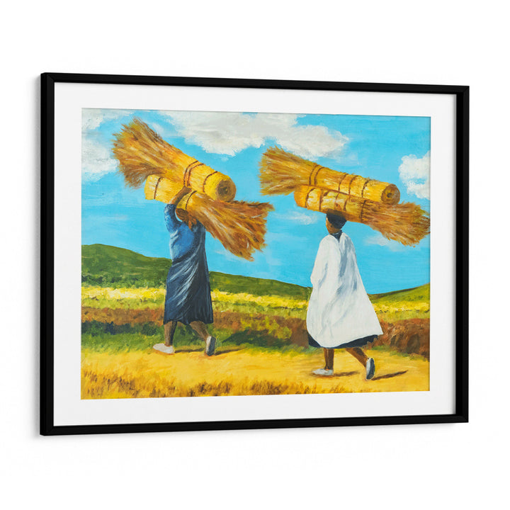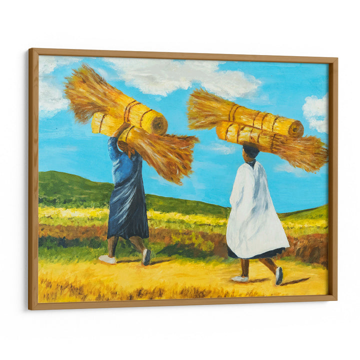 Balance by Colleen Hefer is a vibrant tribute to resilience and rhythm in everyday life. Set against rolling green hills and a brilliant blue sky, this landscape painting captures two women walking with golden harvests balanced gracefully on their heads. The artwork radiates warmth, dignity, and movement—making it both grounding and uplifting. A perfect addition to living rooms, dining spaces, or gallery walls, this piece brings cultural richness and storytelling into the modern Indian home.