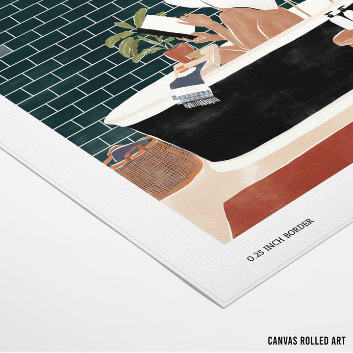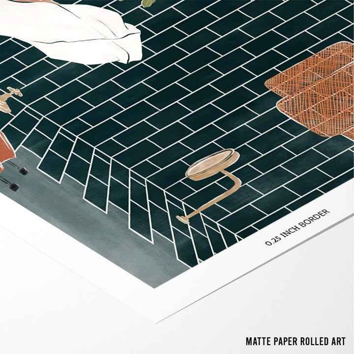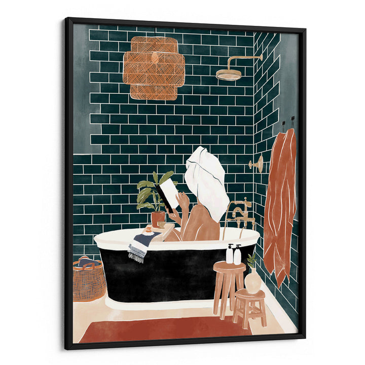 Indulge in a slice of quiet luxury with Bathtub Bliss, a contemporary framed art print celebrating slow living and self-care. Set in a beautifully tiled emerald-green bathroom, this artwork captures a woman in her element—wrapped in a towel, soaking in the tub, book in hand. From rattan accents to warm earthy tones, every detail adds texture and tranquility to your space. A perfect reminder to slow down, just a little.