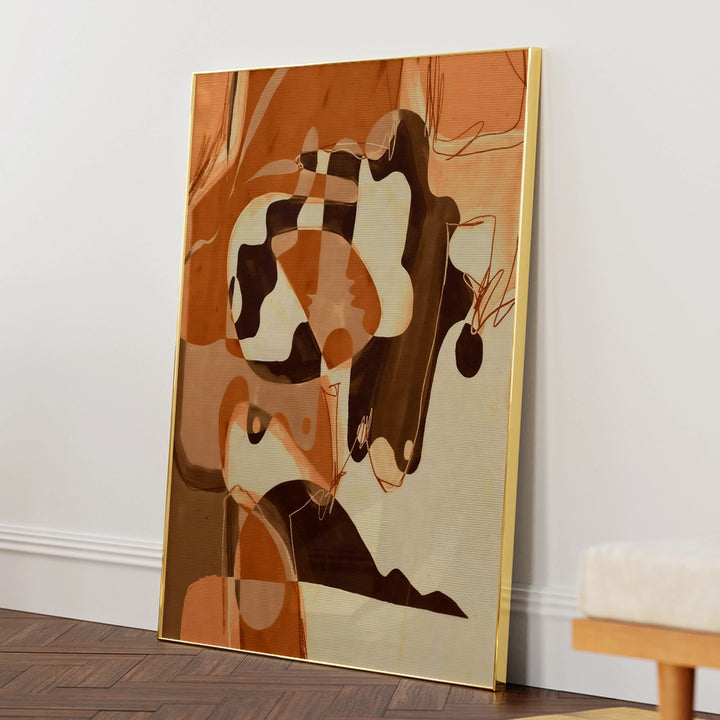 - Expressive abstract composition with rich terracotta and neutral tones