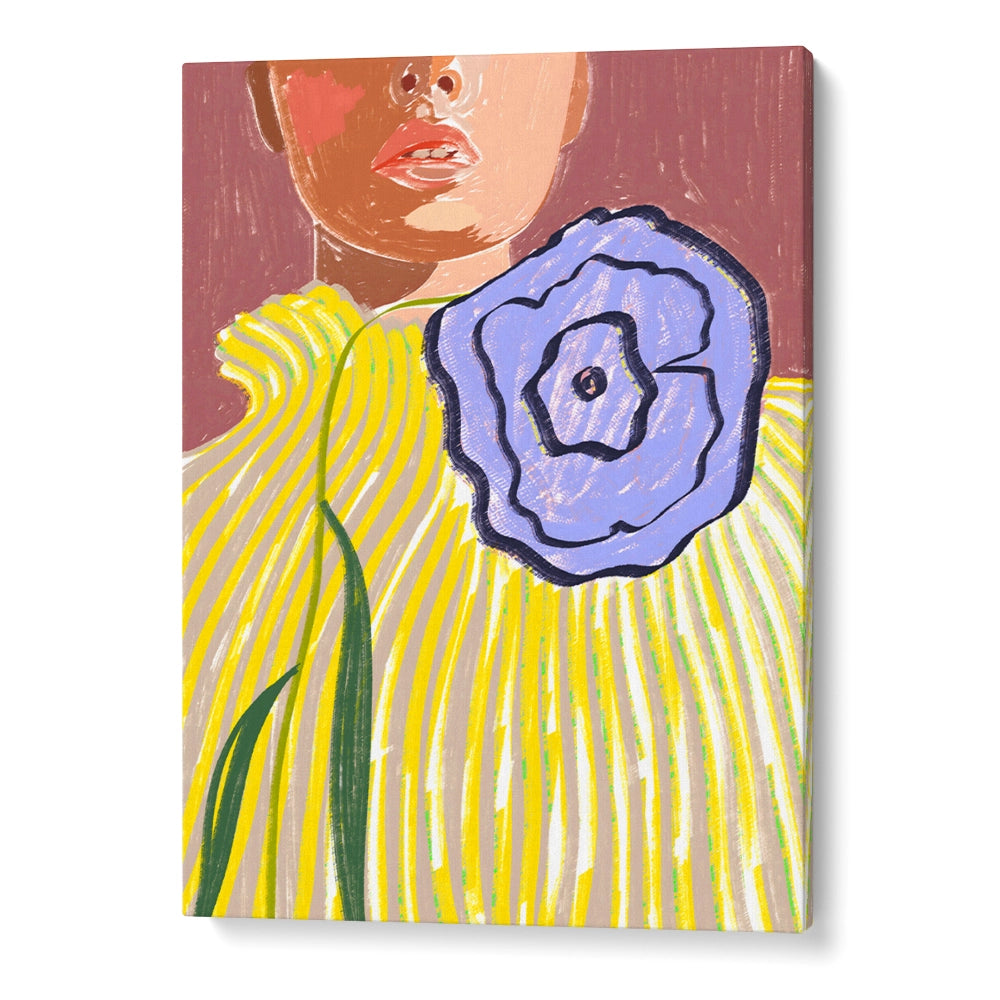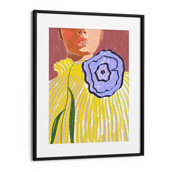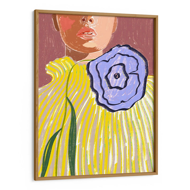 Embrace bold femininity with Blossom Elegance, a striking contemporary art print featuring a woman adorned with a large abstract flower and textured yellow attire. The expressive brushwork, vibrant color palette, and warm tones blend fashion-inspired illustration with fine-art sensibility. Perfect for adding personality, confidence, and modern artistry to bedrooms, studios, dressing areas, or creative spaces.