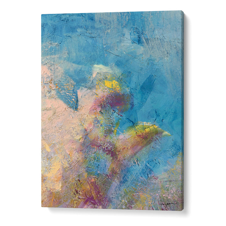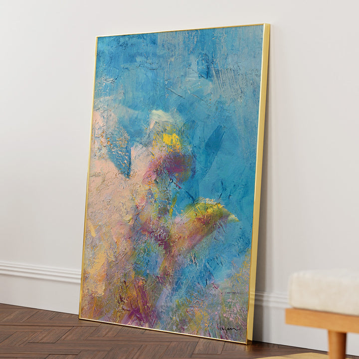 Bring a sense of open air and serene atmosphere indoors with Blue Skies, a stunning textured abstract canvas painting. Dominated by rich, layered blues and luminous whites, this piece features a heavy, impasto style that captures the essence of a cloud-filled sky or a churning sea. Subtle hints of pink and yellow peek through the texture, adding complexity and light. This expressive painting is perfect for adding calmness, depth, and a high-end artistic finish to your living room, bathroom, or contemporary office.