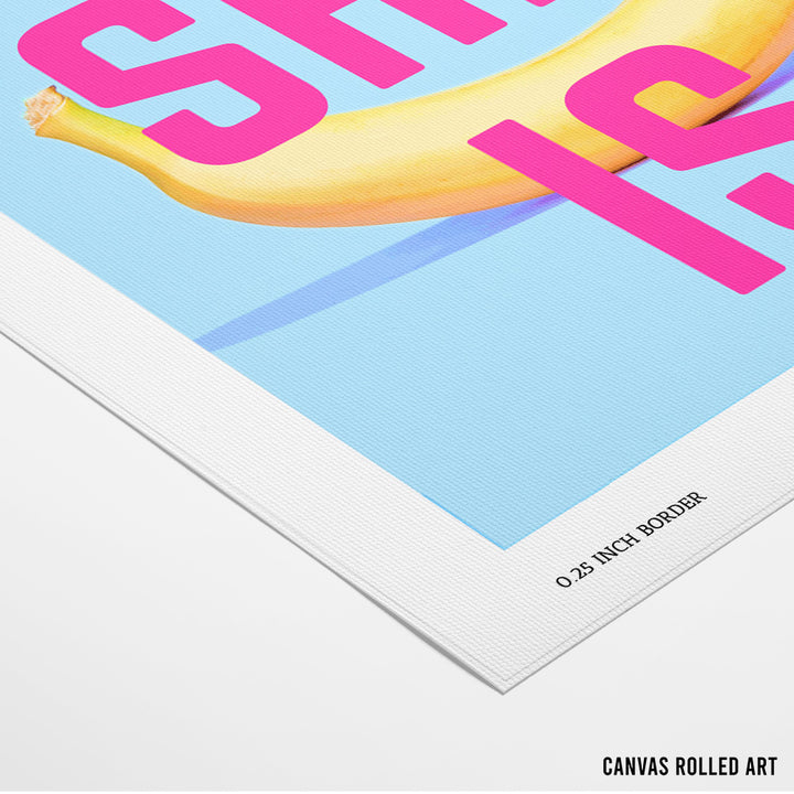pop art poster, banana art print, funny wall art, neon pink typography, bold statement print, modern kitchen art, graphic design poster, humorous wall decor.
