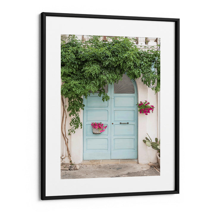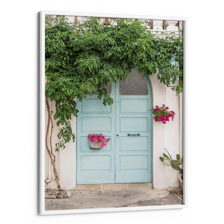Bring charm and freshness into your home with Botanical Facade, an aesthetic wall art canvas that captures a pastel blue door framed by cascading green vines and vibrant pink flowers. This artwork embodies Mediterranean warmth and timeless beauty, making it the perfect addition to bright living rooms, cozy entryways, or relaxing patios.