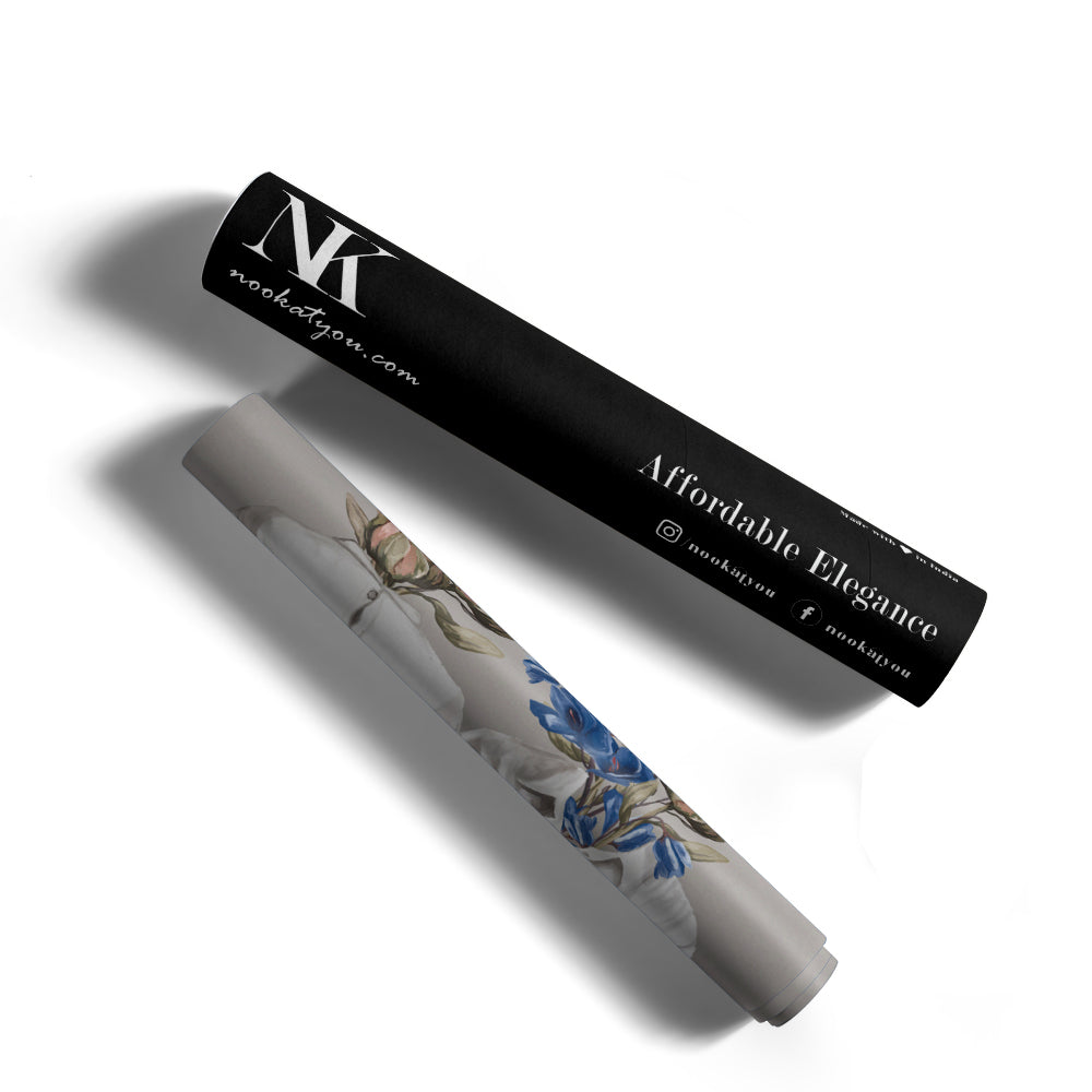 - Vibrant Botanical Contrast with lush pink and blue flowers against a neutral backdrop.