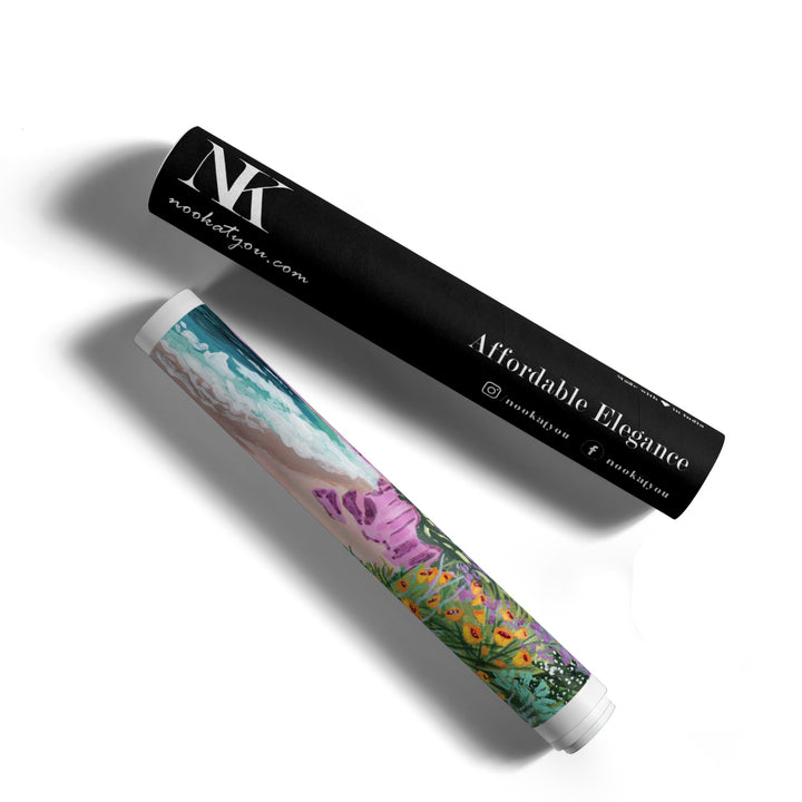 Coastal Bluffs is a vibrant celebration of nature, where wildflowers meet ocean waves and misty mountains. This landscape art painting brings together vivid florals, pastel skies, and coastal energy in a harmonious blend that feels both refreshing and uplifting. Ideal for modern Indian homes that crave colour and character, this artwork suits living rooms, bedrooms, or balcony nooks.