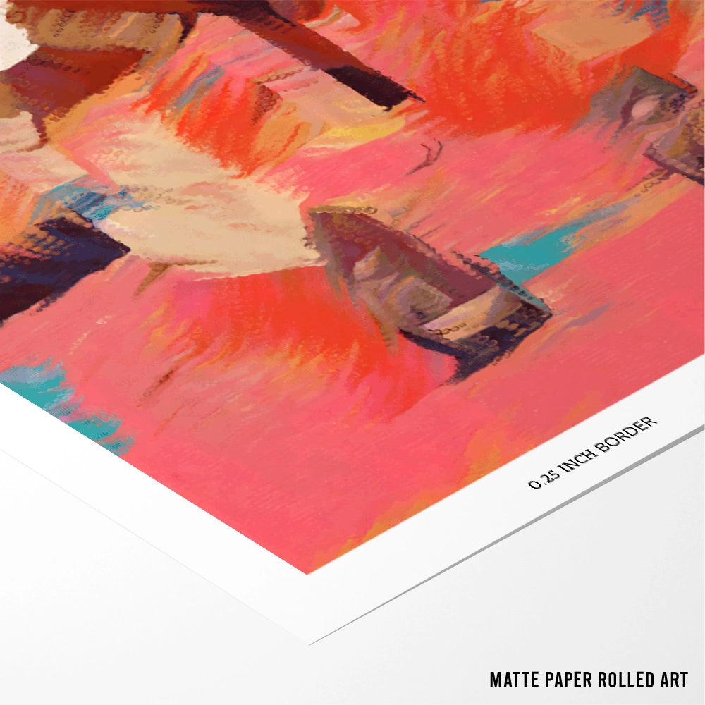 The warm coral, deep burgundy, and soft blush hues create movement and depth—making this modern illustration poster a powerful focal point for curated contemporary spaces.