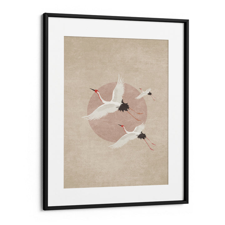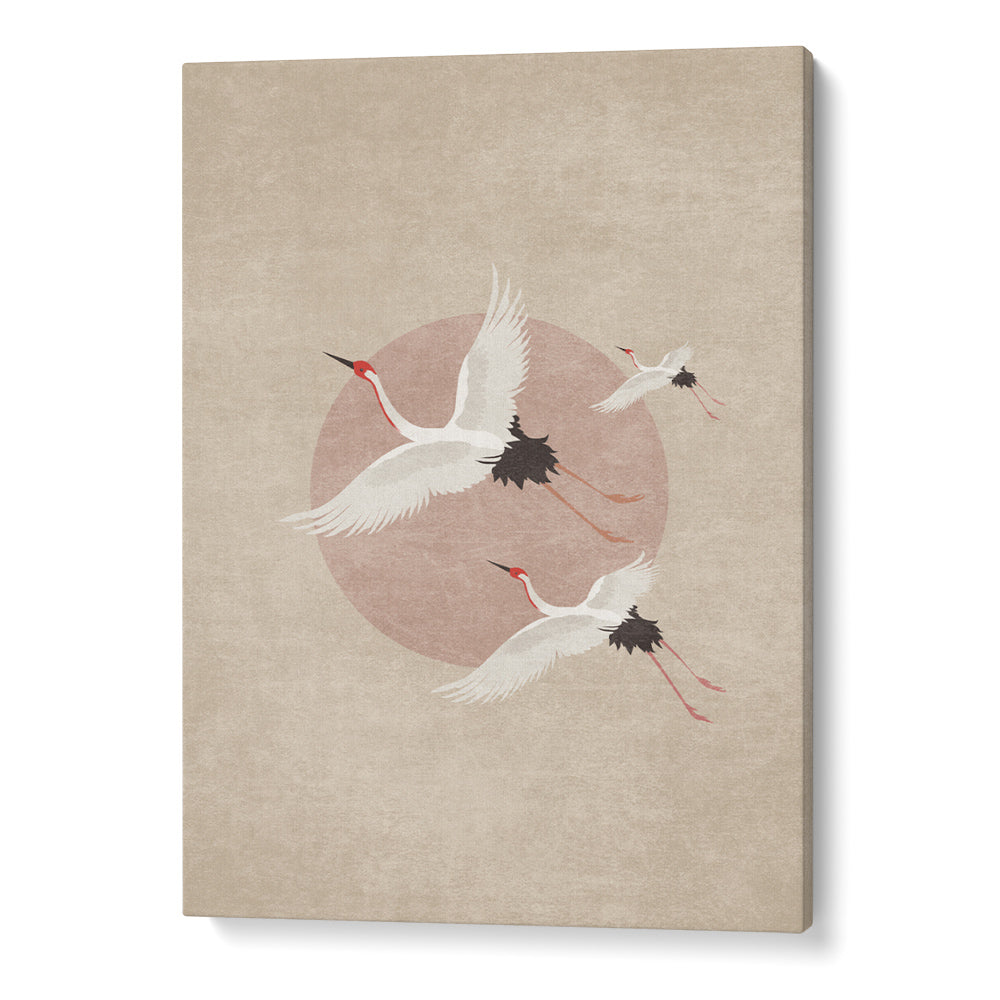 beige abstract wall art, cranes in flight, asian inspired print, minimalist bird art, neutral wall decor, feng shui art, nature abstract, soothing canvas print, elegant home decor