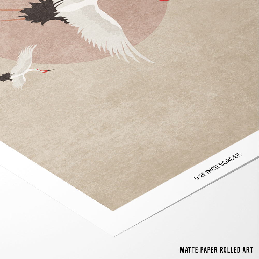 Cranes in Flight - Beige – Minimalist Asian-Inspired Bird Wall Art