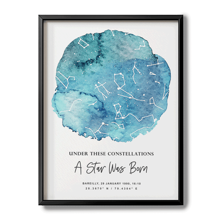 Capture the exact night sky from your most meaningful date with a custom sky map. Whether it’s the night you were born, your wedding day, or a special milestone, this elegant watercolor-style print transforms constellations into timeless wall décor.