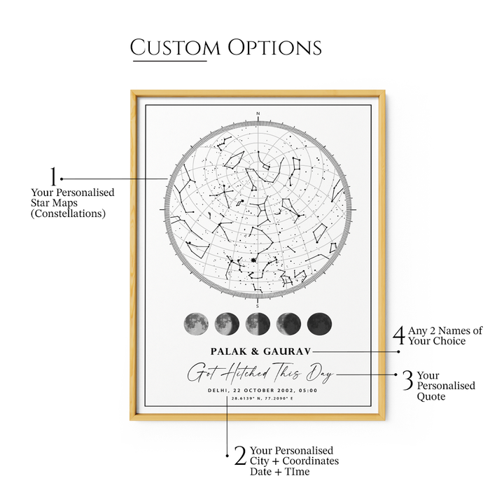 custom star map gift, personalized night sky print, wedding keepsake, anniversary star map, birthday celestial gift, lunar phase art, romantic wall decor, custom constellation map