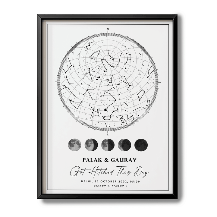 Celebrate your special moment with our Custom Star Map Gift – White Lunar Edition. This personalized artwork captures the exact night sky from your chosen date and location, along with lunar phases, making it a meaningful keepsake for weddings, anniversaries, birthdays, or the day you first met. Printed on premium matte paper or canvas, it’s a timeless way to cherish life’s most important memories.