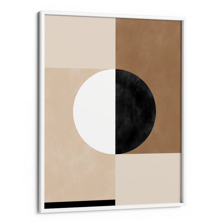 Embrace modern simplicity with the Duality Art Print, a striking piece of minimalist geometric abstraction. This artwork uses a sophisticated palette of warm beige, rich brown, black, and crisp white to create a balanced composition of interlocking quadrants and a central split circle, symbolizing Yin and Yang, contrast, and harmony. The clean lines and earthy texture make it an ideal contemporary focal point. Perfect for Scandi, Boho-Neutral, or minimalist interiors—it's art that speaks to balance and stillness in a chaotic world.