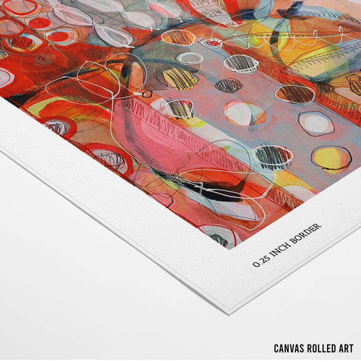 Inject your space with intense warmth and movement using the Early Bird, late afternoon II* canvas wall art. This abstract expressionist piece is characterized by a high-energy composition dominated by fiery reds, rich oranges, and soft pinks, layered with bold gestural marks, scribbled lines, and fluid circular shapes. The thick, impasto-like texture adds depth and dimension, capturing a feeling of raw, passionate creativity. This vibrant piece is an undeniable focal point, perfect for modern living rooms, dining areas, or creative studios looking for a powerful visual statement.