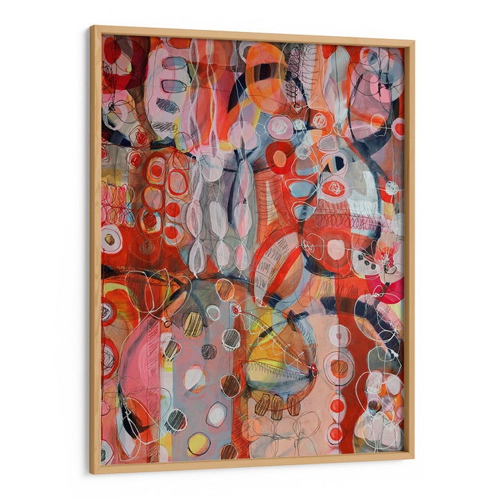 vibrant abstract wall art, red expressionist painting, impasto texture art, warm color palette, energetic wall decor, modern canvas art, abstract circles, contemporary home decor