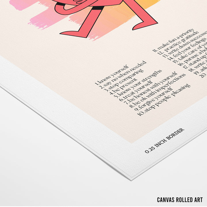 Position the Embrace with Joy painting in a room with neutral furniture to let its vibrant colours truly pop. Its pairs beautifully with Boho wall art and Abstract wall art from our collection.