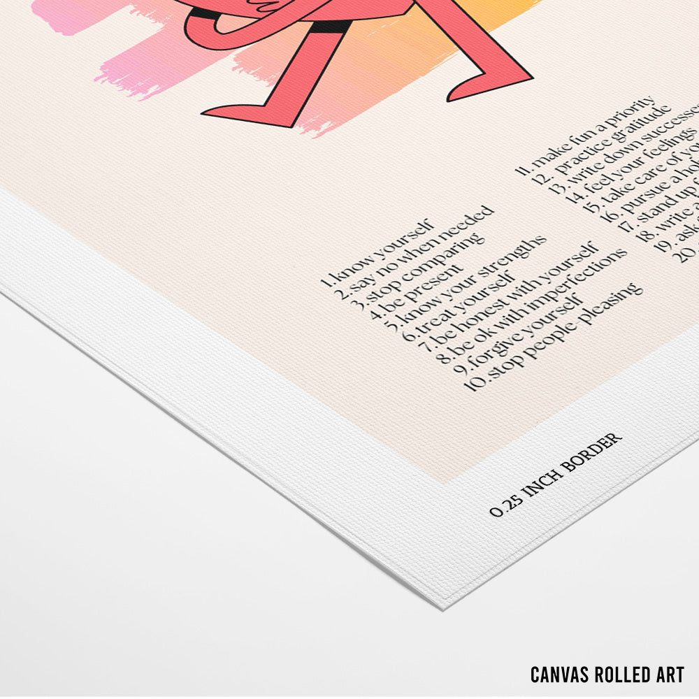 Clean, frameless edge. The art wraps around the canvas for a museum-style presentation.