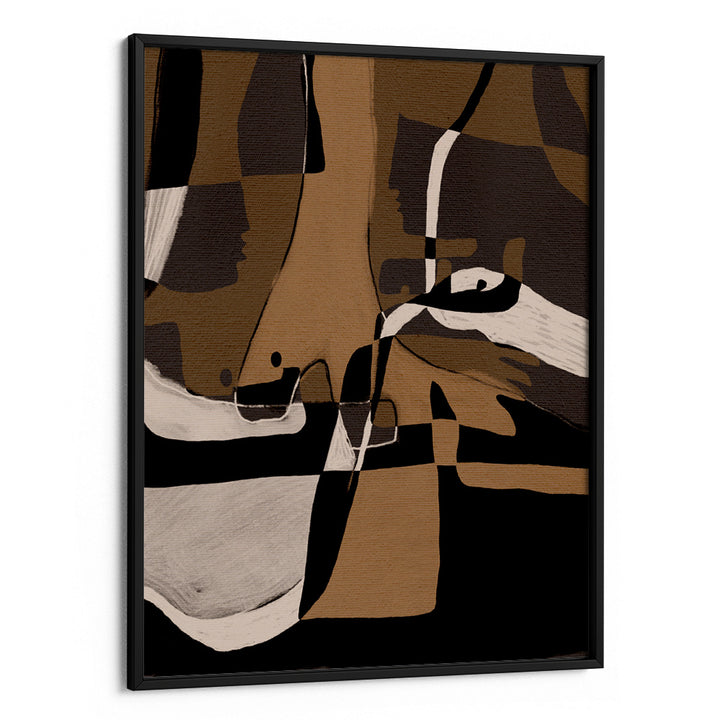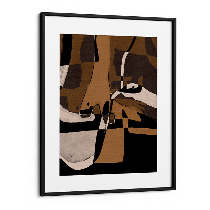 Abstract expressionism, cubist poster, dark abstract art, monochrome wall decor, black and tan art, modern industrial poster, fragmented forms.