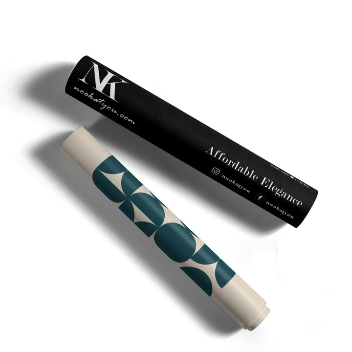 Introduce the principles of mid-century modern design into your home with the Geometric Harmony III Canvas Print. This abstract piece showcases a sophisticated grid pattern composed of dark teal/petrol circles and semicircles, accented by a single bold red element. Inspired by the clean lines and primary shapes of the Bauhaus school, this canvas print is perfect for spaces that value order, modern aesthetics, and a calming, muted color palette—such as a contemporary living room, minimalist office, or gallery wall.