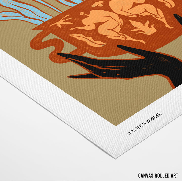 Clean, frameless edge. The art wraps around the canvas for a museum-style presentation.
