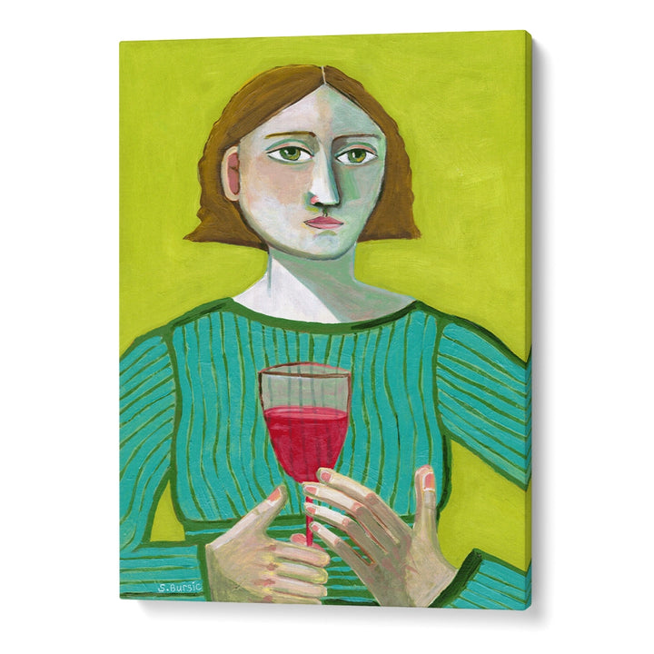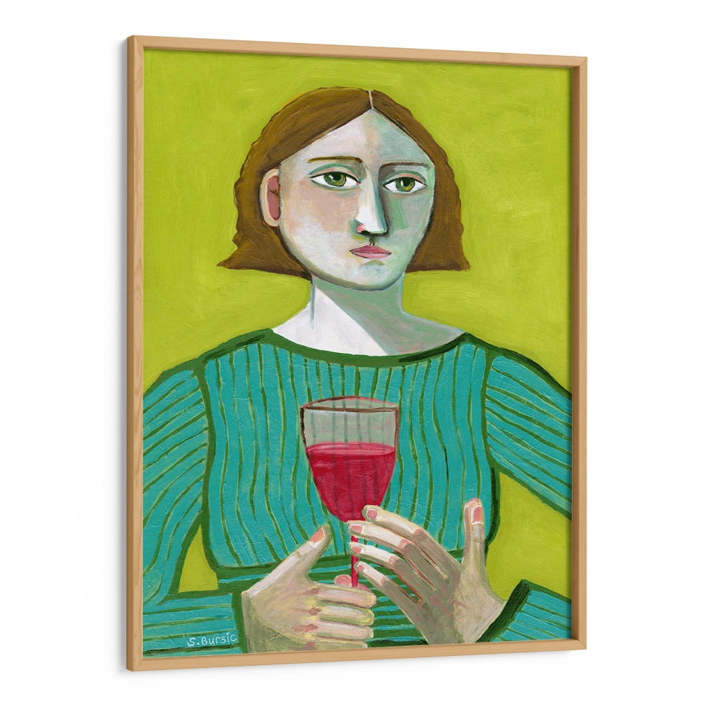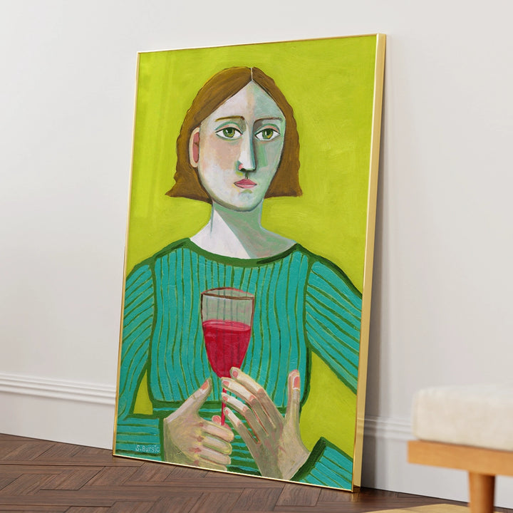 women illustration painting, bold wall art, modern figurative painting, portrait wall decor, wine theme artwork, contemporary art print