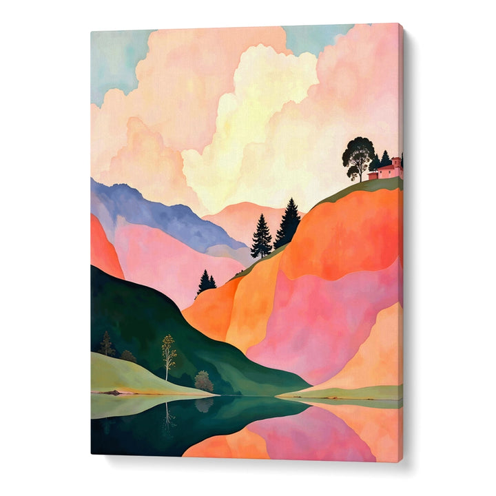 Landscape canvas prints, pastel landscape art, dreamy wall décor, romantic scenery painting, serene home décor, modern landscape artwork, soft colour canvas print, calming wall art