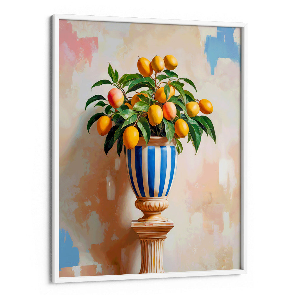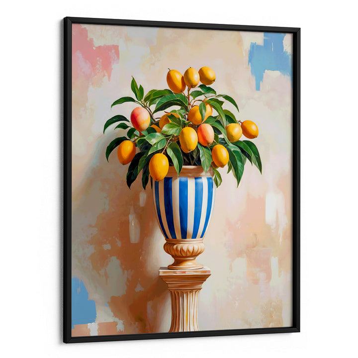 Mango Summer – Elegant Botanical Wall Art of a Citrus Tree in Striped Urn