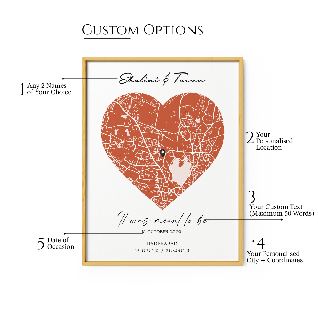 Custom Street Burnt Orange Love Map Art – Personalized Gift For Her
