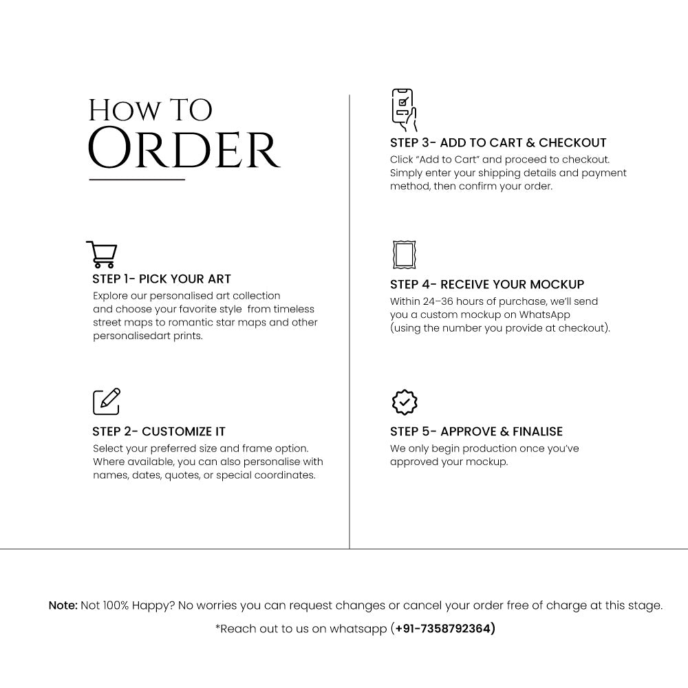 Every order is made to order and goes through multiple quality checks. This process takes 3–5 business days, after which your art is packed and shipped. You'll receive a tracking link via email to follow your order.