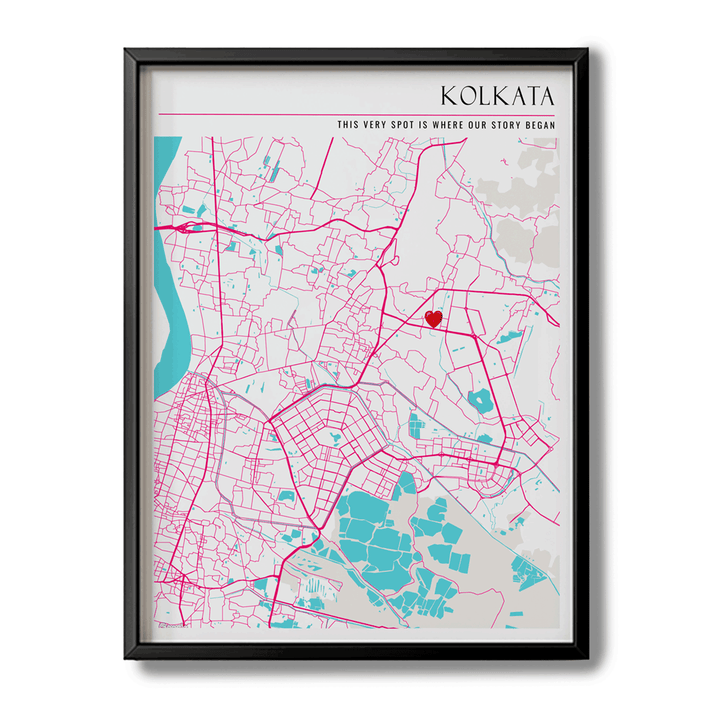 Bring a touch of elegance and memory to your walls with our Kolkata custom street map print. Perfect for celebrating the very spot where your story began, this unique wall art highlights meaningful places with a modern blush design.
