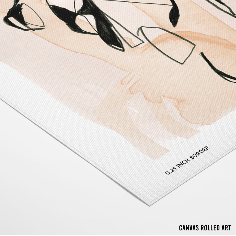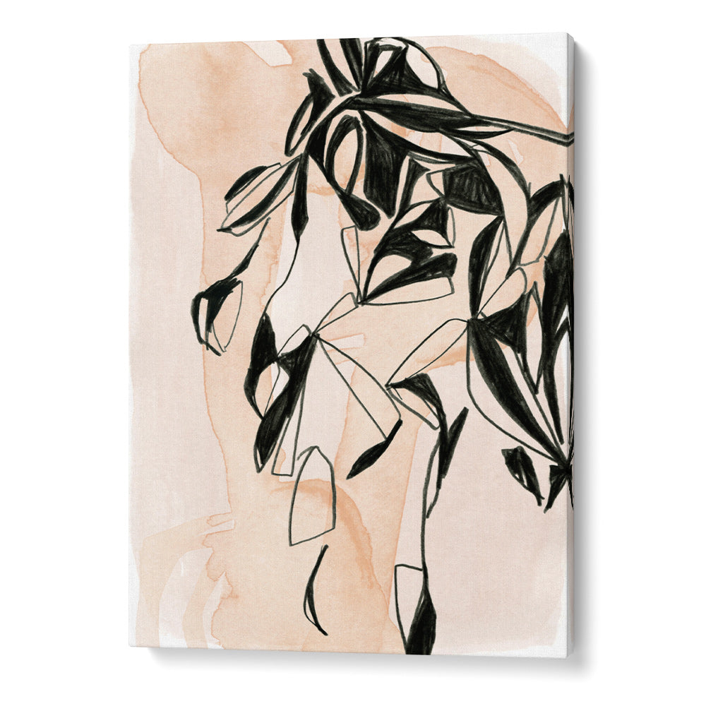 Introduce subtle sophistication with Monochrome Leaves, a striking abstract wall art print. The piece features dynamic, bold black line work and solid shapes of abstract foliage, contrasted against a soft, ethereal background of blush and peachy watercolor washes. This design perfectly balances stark contrast with gentle color, creating a modern, minimalist aesthetic that feels both grounded and elegant. It’s an ideal abstract wall art piece for bedrooms, hallways, or any space seeking a touch of modern botanical charm.
