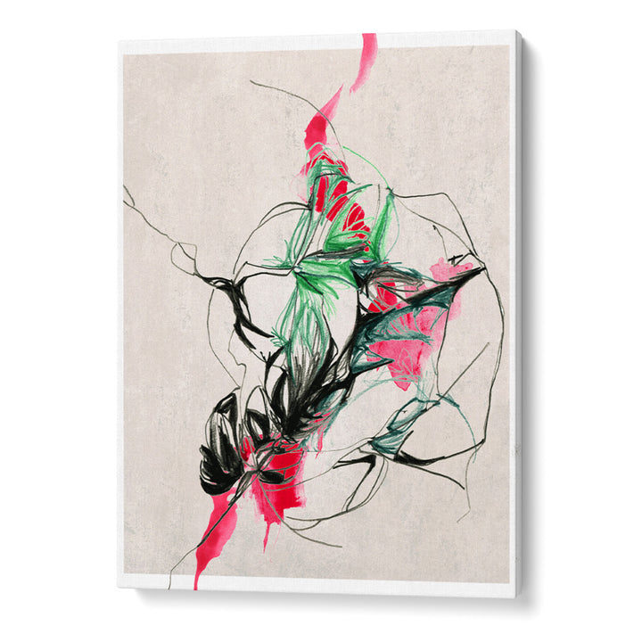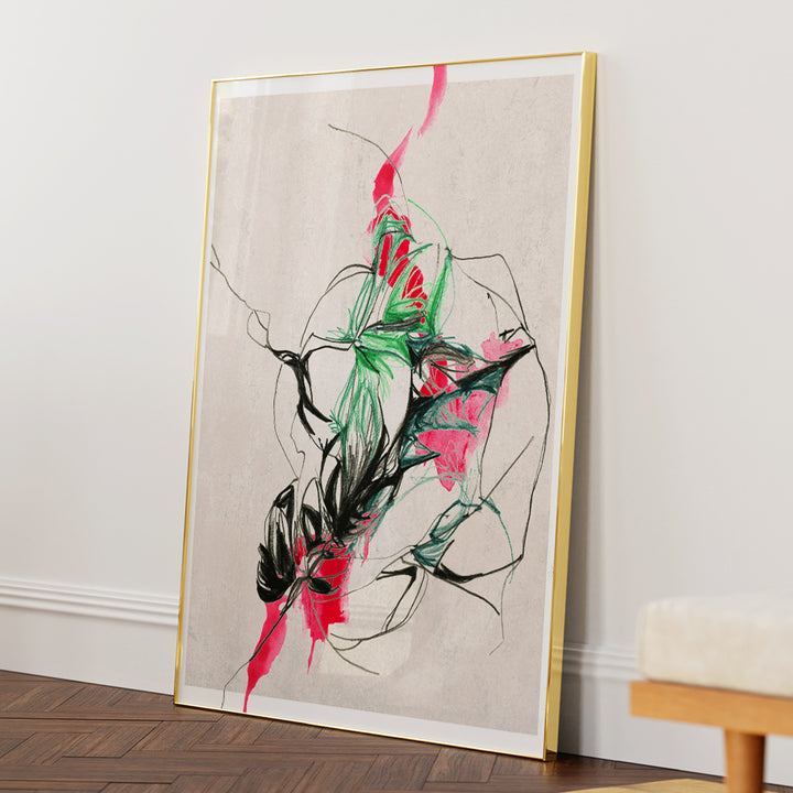 vibrant abstract poster, expressive line art, pink and green wall art, modern botanical abstract, colorful statement print, artistic wall decor, dynamic organic forms, high-contrast poster