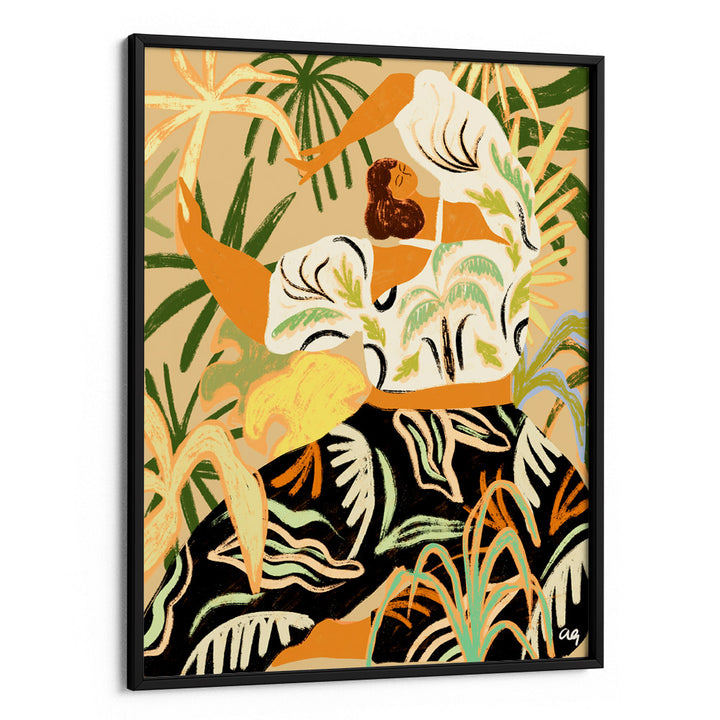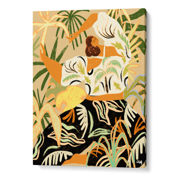 Bring warmth and rhythm into your space with Nature Embrace, a vibrant boho artwork on canvas. Featuring a free-spirited figure surrounded by lush tropical foliage, this piece captures harmony, movement, and the soulful connection between humans and nature. With earthy beige tones, bold greens, and sun-kissed orange strokes, it’s the perfect statement for bohemian, modern, or eclectic interiors.