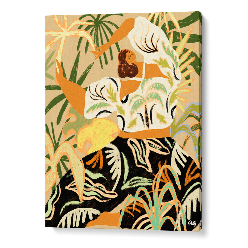 boho artwork, tropical canvas painting, earthy wall decor, modern bohemian prints, abstract foliage art, soulful home decor, nature inspired art, eclectic interiors