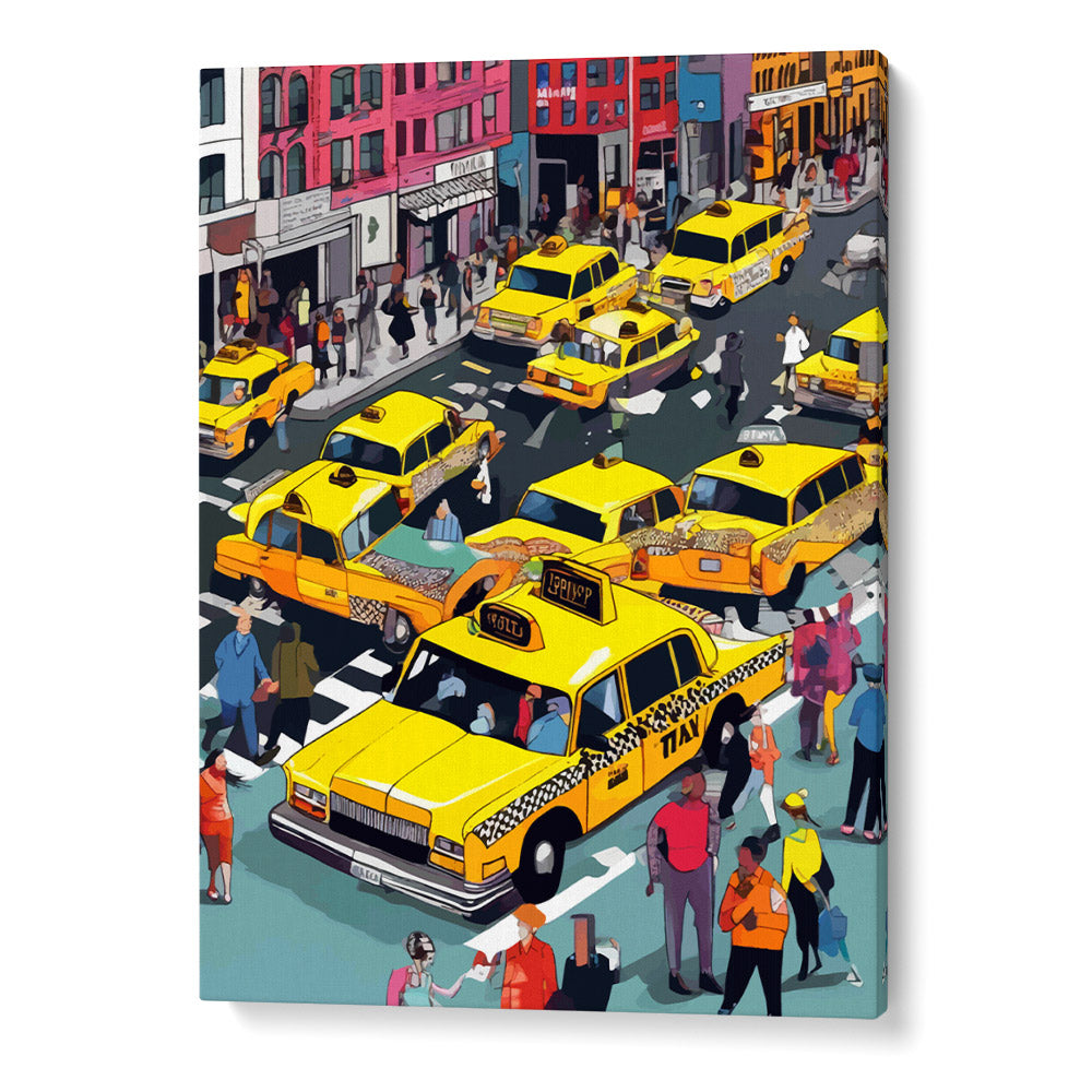 New York wall art, yellow taxi canvas, city street painting, urban bedroom wall decor, colourful cityscape art, travel-inspired artwork, modern canvas print, New York Minute wall art, bedroom wall art, canvas prints India