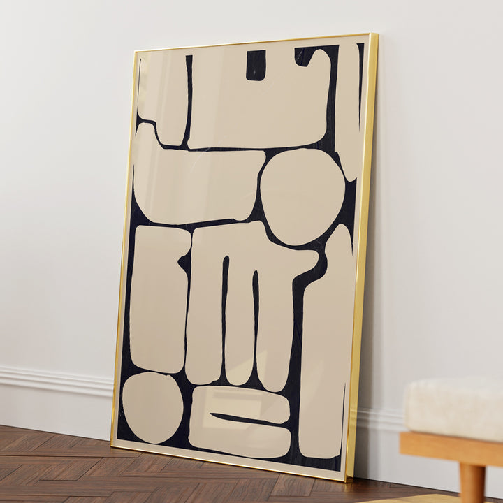 Discover modern minimalism with Terra Tones – Pale Shapes, an abstract wall art piece that blends organic silhouettes with calming neutrals. Creamy beige forms are outlined in bold black on a linen-like backdrop, creating a striking contrast that adds sophistication without overpowering your space. Perfect for contemporary Indian homes, this print invites visual curiosity while maintaining a sense of calm. Whether hung solo or as part of a gallery wall, it complements warm wood, monochrome palettes, and earthy textures beautifully.