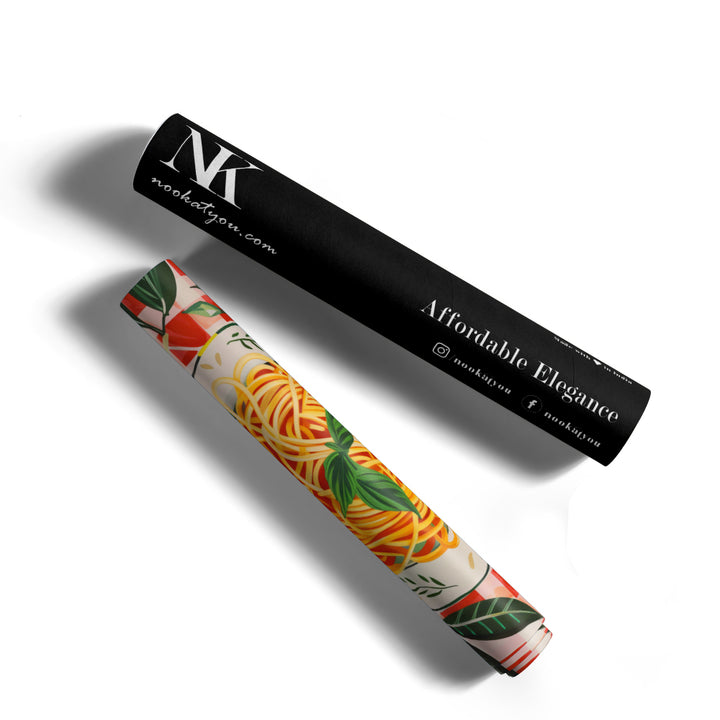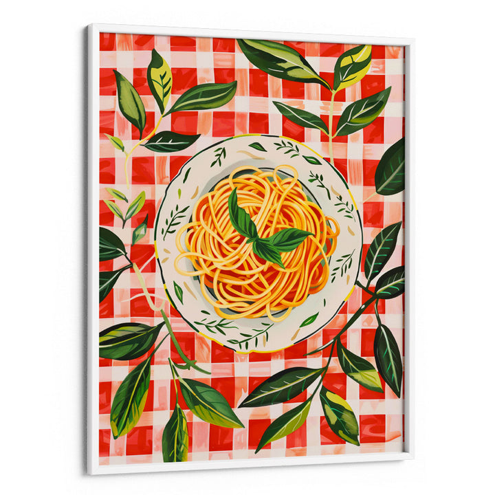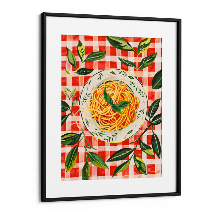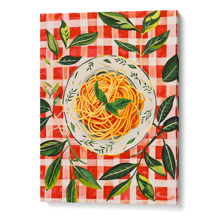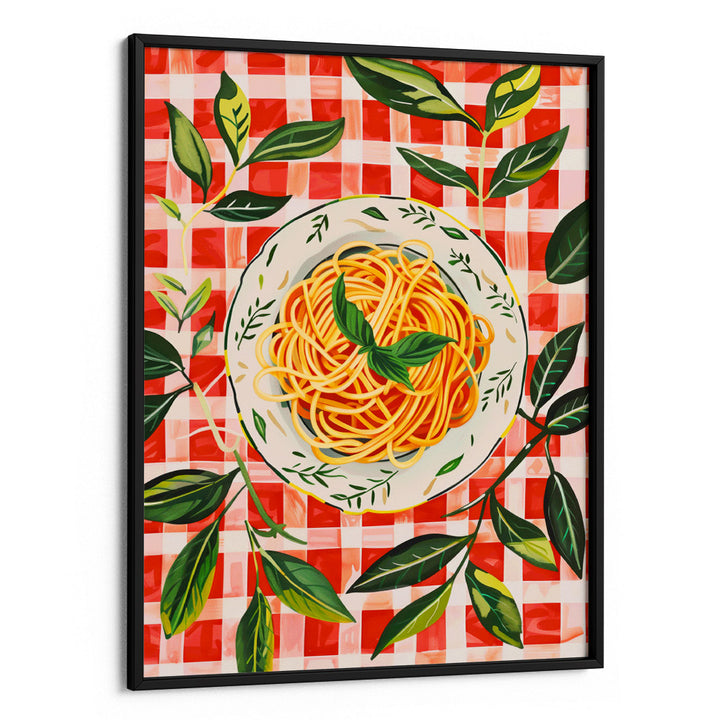Bring the romance of Italian dining into your home with Pasta and Passion, a vibrant wall art print that celebrates the heart of Mediterranean culture. Featuring a beautifully illustrated plate of pasta set against a lively red-and-white checkered tablecloth, surrounded by fresh green leaves, this artwork adds warmth and charm to kitchens, dining rooms, and cozy cafés.
