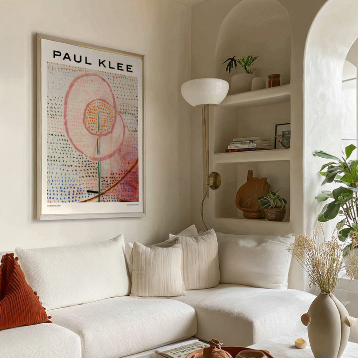 A masterpiece from 1934, this artwork showcases Klee’s signature abstract style, blending soft pastels and bold brushstrokes to create a delicate yet striking floral composition. The textured dots and flowing lines evoke movement and harmony, making it a captivating addition to any room.