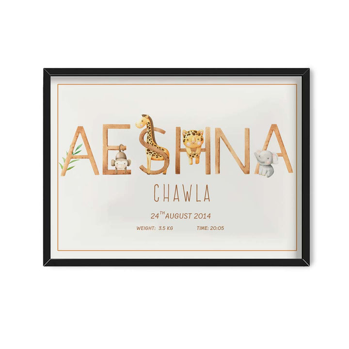 Celebrate your child’s special day with our adorable Personalized Kids Name Poster featuring playful baby animals. This unique design makes the perfect customised gift for birthday, combining your child’s name, birth details, and fun animal illustrations into a one-of-a-kind keepsake. It’s a beautiful way to add charm to your kid’s nursery or bedroom while preserving precious memories.