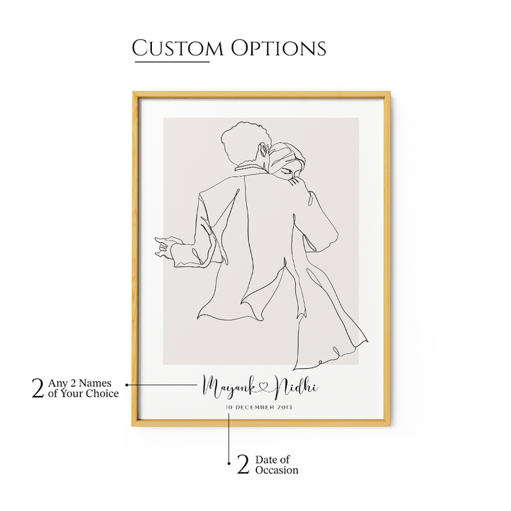 Celebrate love, connection, and timeless moments with this elegant Personalized Line Art. Hand-drawn in a minimalist style, this artwork captures your special bond — whether it’s your wedding day, first dance, or a cherished memory.