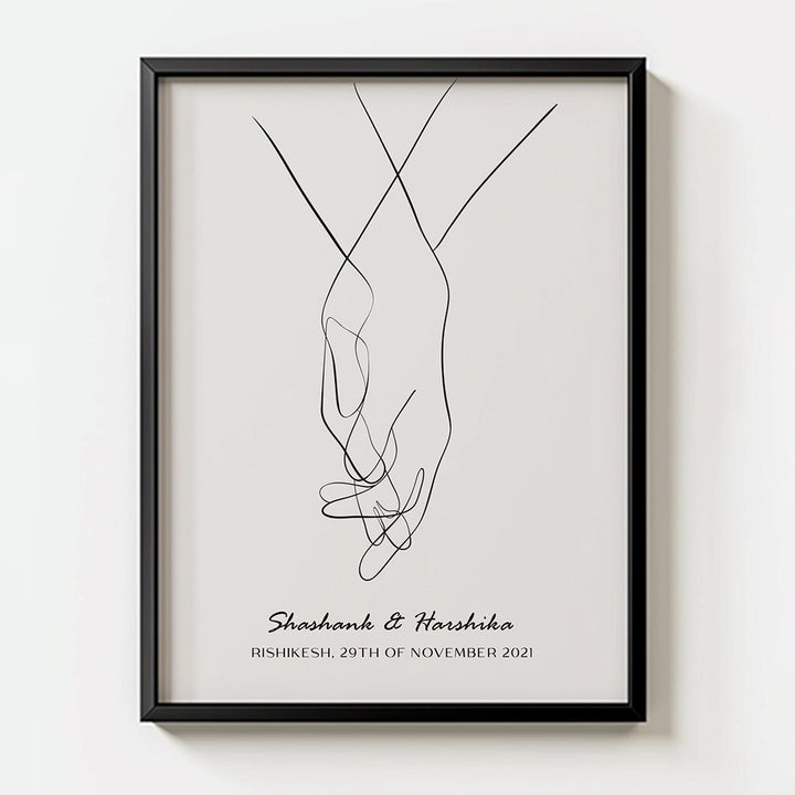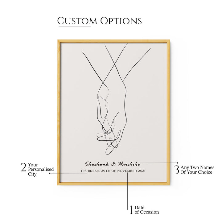 Clasp Line Art Print – Personalized Line Art for Couples (Beige)