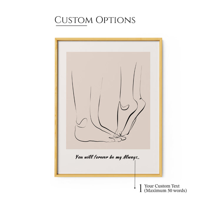 Bring elegance and emotion into your space with this Custom Line Art print. The “Tip Toe (Beige)” design captures intimate moments in a timeless minimalist style, perfect for celebrating love, family, or personal milestones.