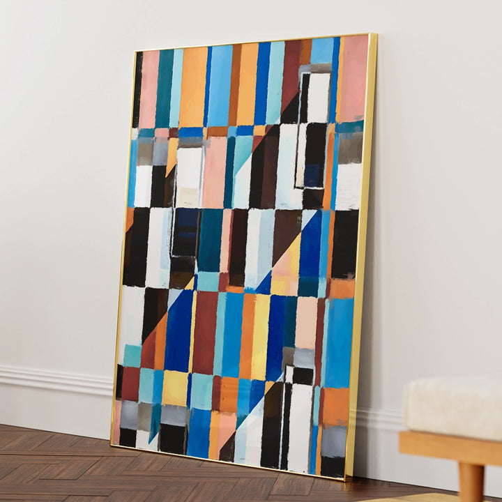 Bring balance, structure, and Nordic calm into your space with Scandinavian Earth, a striking geometric artwork inspired by Scandinavian design principles. Featuring a blend of warm browns, muted pinks, deep blues, and crisp whites, this piece captures the perfect harmony of colour and form. Ideal for lovers of abstract wall decor who want something bold yet minimal for modern homes.