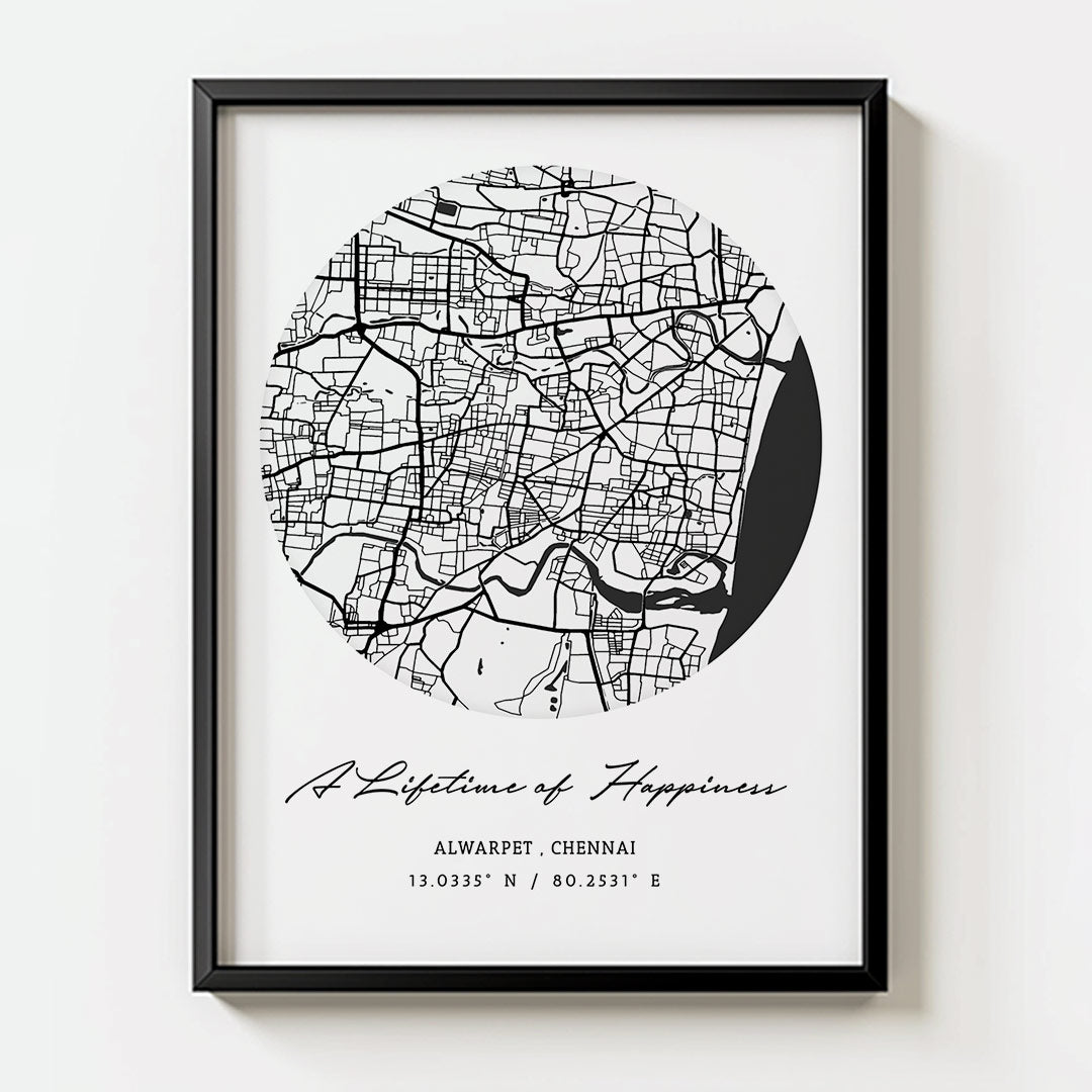Turn your special places into timeless art with our custom map art. Whether it’s your hometown, a travel memory, or the city where your story began, this minimalist street map print celebrates meaningful locations in a clean and modern style.