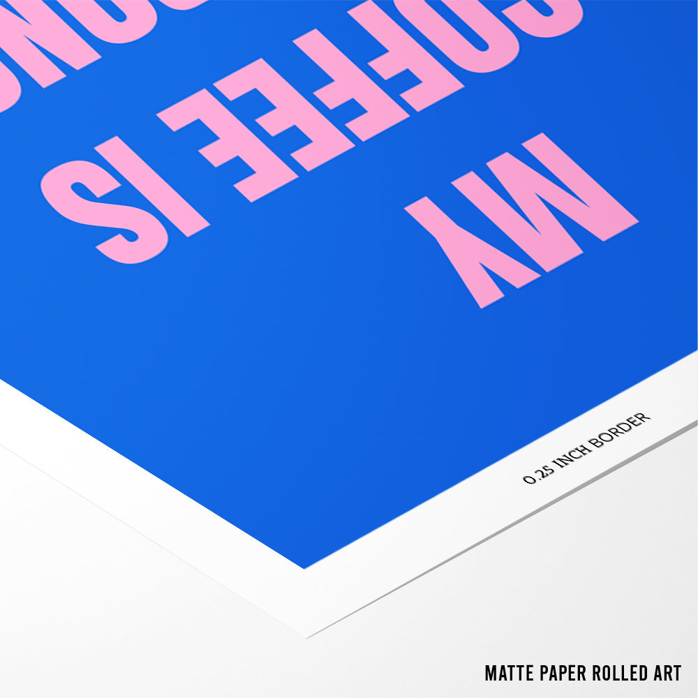My Coffee Is Strong – Motivational Blue & Pink Quote Wall Art Poster