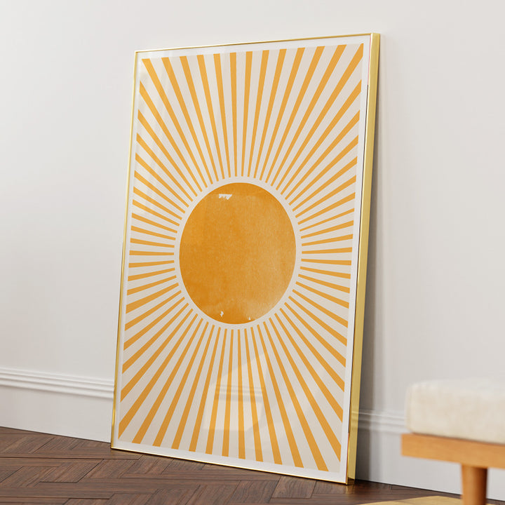 sun art print, radiant canvas painting, minimalist wall art, warm-toned decor, sunrise poster, boho canvas art, scandinavian sun artwork, geometric sunburst print